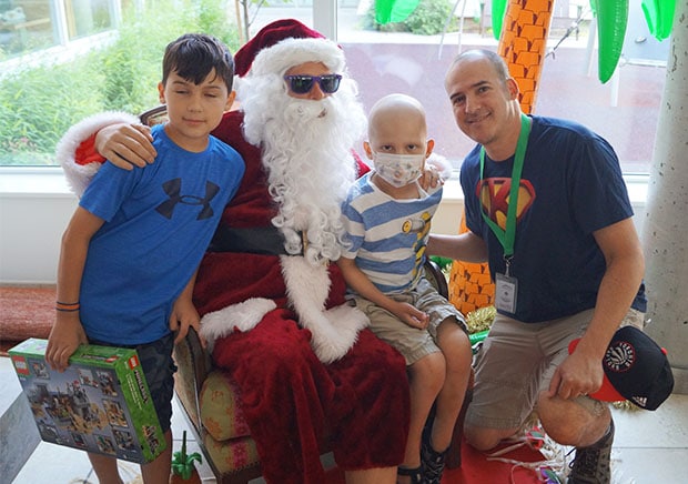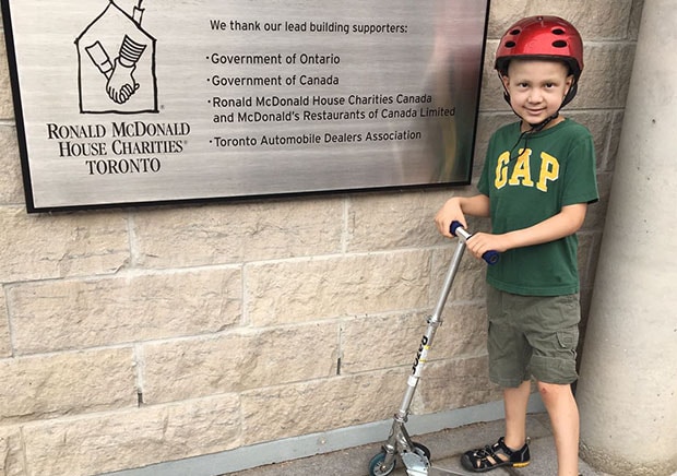 In the weeks leading up to their trip, Kevin had developed some mysterious bruising. A blood test confirmed that he had acute myeloid leukemia and he required blood transfusions right away. Kevin was admitted to the children’s hospital in Ottawa until June, while he underwent three rounds of chemotherapy. On June 16, Kevin and his parents came to Toronto so he could receive a bone marrow transplant. They checked into RMHC Toronto, where they’ve been staying ever since.