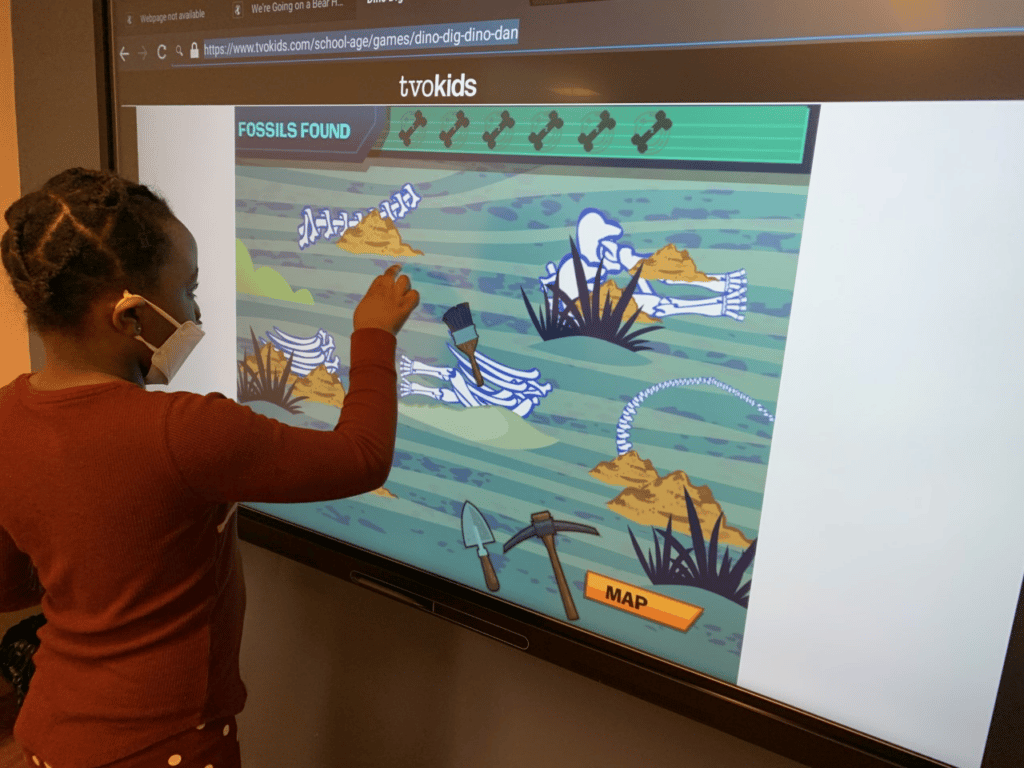 As part of the unit on the Scientific Method, a grade 1 student learned about paleontology and utilized an online game to carefully dig and preserve dinosaur bones around the world. Next, as part of practicing the steps in the scientific method, she collected data in a graph to present her findings accurately and clearly to her classmates.
