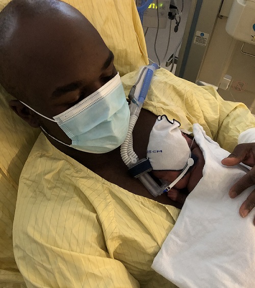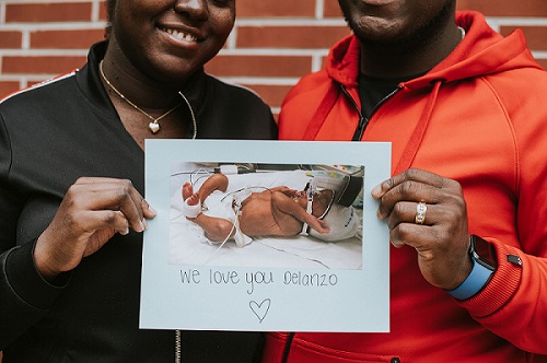 “Our little bundle of joy came into the world squealing, which was music to my ears,” says Delano. “I was thankful but scared because he was immediately rushed away, and I didn’t know where to go. It was frightening to be at the hospital during the COVID-19 crisis and far away from home.”