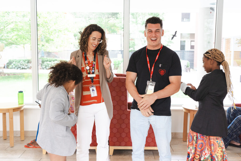 Nick recently joined us at the House to spend time with families during our Coffee Talk program — a weekly activity designed to bring parents together while children enjoy creative play. That afternoon, the kids were deep into Play-Doh creations when a little spontaneous fun broke out: a few of them slipped on blazers and put on an impromptu fashion show.
