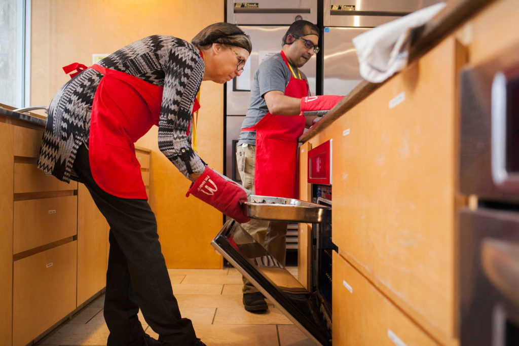Our array of food programs includes our Home for Dinner program, in which corporate and community groups support families by cooking a healthy meal up to three or four nights a week. We offer food staples in our pantry, and adults and children can enjoy participating in our cooking classes.